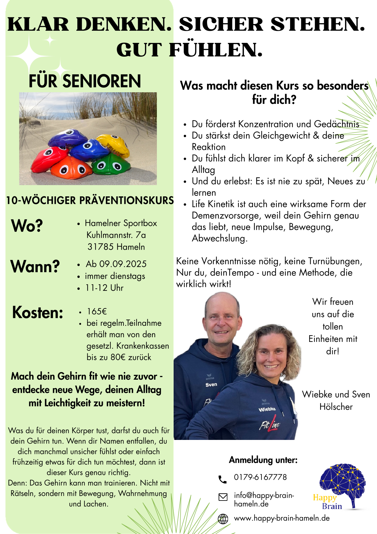 Sie sind hier: Startseite » Kurse » Life Kinetik® für Senioren